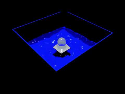 Swapping to an overflowing bathtub is more productive as this will be simulated in the animation. Trying to get a smooth overflow is proving to be tricky as the water velocity keeps making it fly over the edge.